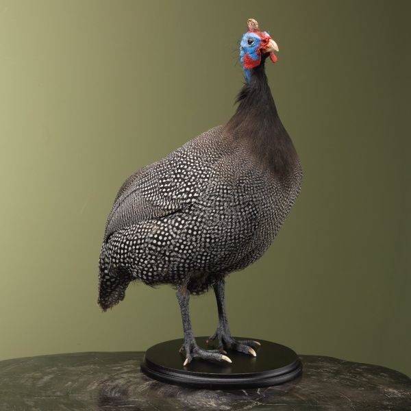 Haal een stukje Afrikaanse natuur in huis met dit prachtig opgezette Helmparelhoen. Een unieke en decoratieve toevoeging aan elk interieur.