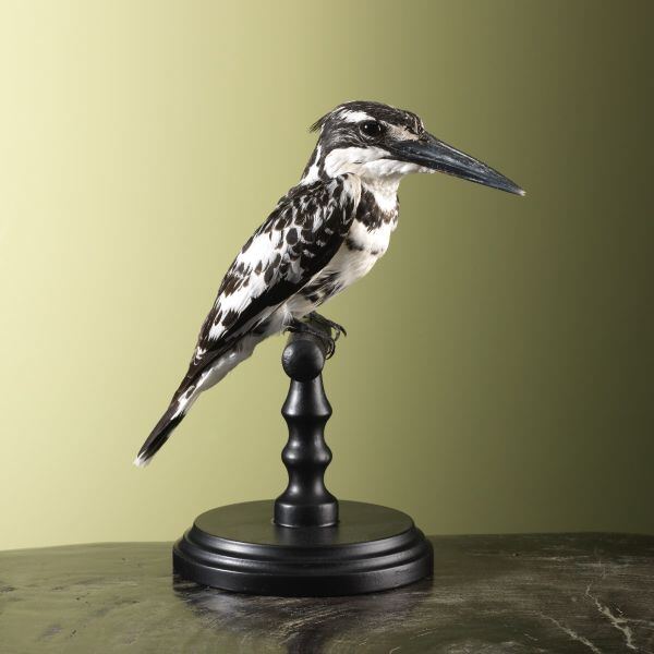Taxidermie is de kunst van het opzetten en conserveren van dieren voor tentoonstellingsdoeleinden, terwijl taxidermy verwijst naar het vakmanschap van de taxidermist. De opgezette Bonte IJsvogel is een prachtig voorbeeld van dit ambacht.