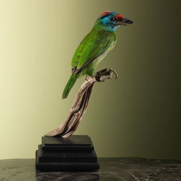 Een leuk feitje over de Blauwkeelbaardvogel is dat ze vaak worden gebruikt in de kunst van taxidermie, waarbij dieren worden opgezet en geconserveerd voor displaydoeleinden. De taxidermy van de Blauwkeelbaardvogel is een populaire keuze onder verzamelaars van exotische vogels.