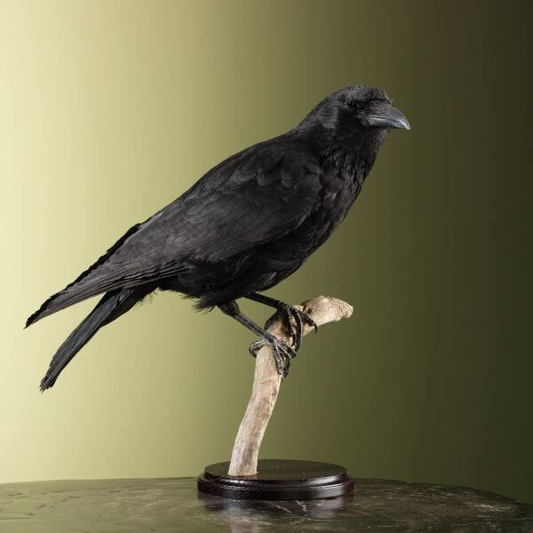 De opgezette Kraai, met de Latijnse naam Corvus corone, is een indrukwekkende toevoeging aan elke collectie van taxidermie. Deze vogel staat bekend om zijn opvallende zwarte verenkleed en intelligente gedrag. Kraaien behoren tot de familie Corvidae en zijn bekend om hun slimme en speelse karakter.